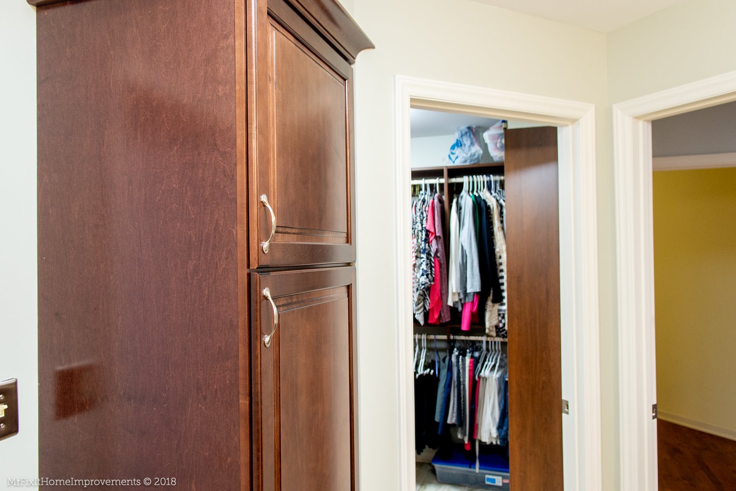 Whatever fits your lifestyle, a double shower, a new closet, new flooring, new tile • BathMasters has got you covered. We just recently finished a new project in Kingsport that’s one of a kind. This three-room project was a complete recreation. We used a four-piece Kraftmaid cabinet with a raised panel door in Montclair Kaffe color. Granite countertops in Venetian ice with rectangular almond colored under-mount sinks.